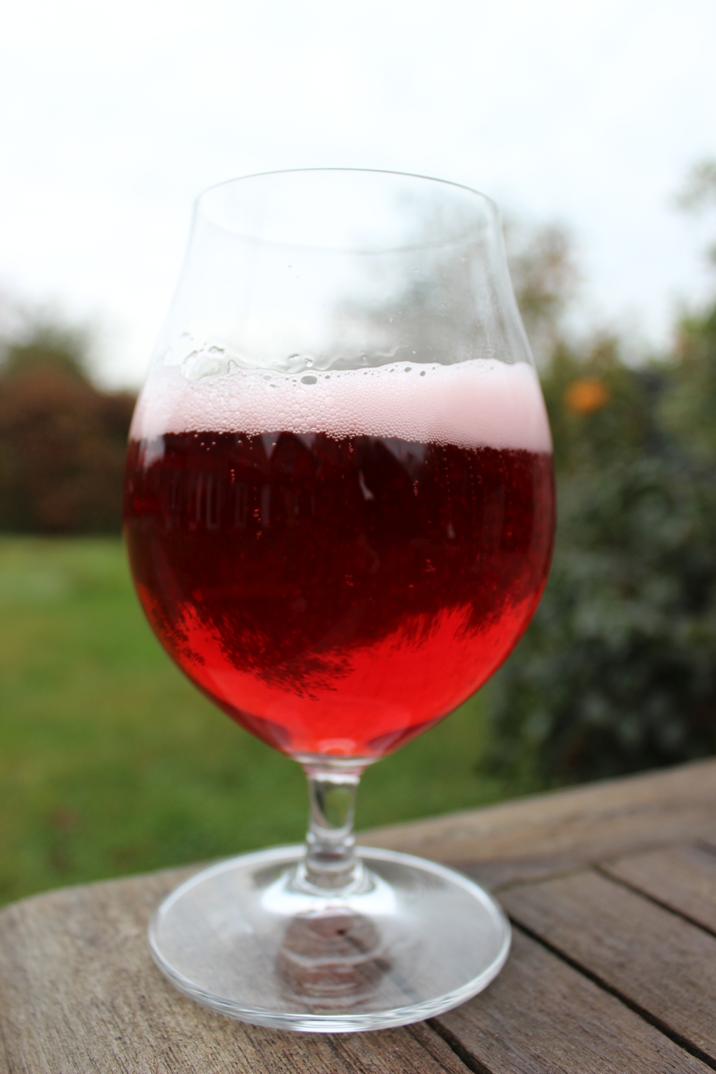 Das Fruchtbier kann eiskalt in einem Bierglas serviert werden. Für ein besonderes Aroma können Sie es mit frischen Früchten garnieren.